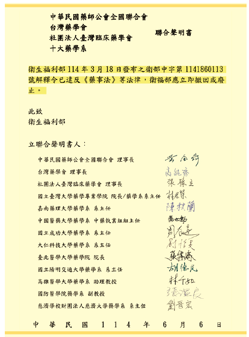 捍衛專業 不容退讓 藥師公會全聯會:立即撤回違法解釋令 才能保障用藥安全