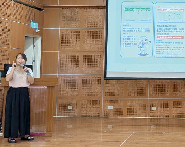 中國醫藥大學附設醫院藥學部藥師李怡慧講授:「特殊劑型藥品介紹及使用注意事項」。她指出,藥事照護考量可從人事時地物說起,人:年齡、識字、教育、咀嚼吞嚥、照顧者、給藥者…;事:剝半、磨粉、管灌、用藥配合度、忘記服藥、重複用藥、交互作用…;時:看診、服藥、領藥、生活作息…;地:居住縣市區域、居家、社區、機構、醫療院所、交通、生活便利性