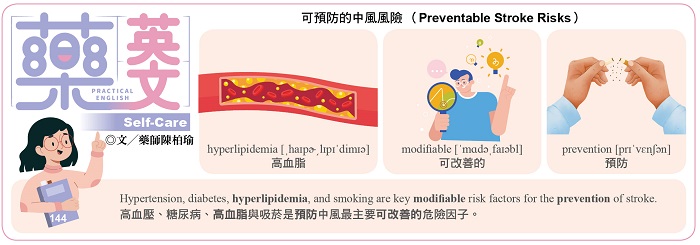 高血壓、糖尿病、高血脂與吸菸是預防中風最主要可改善的危險因子。