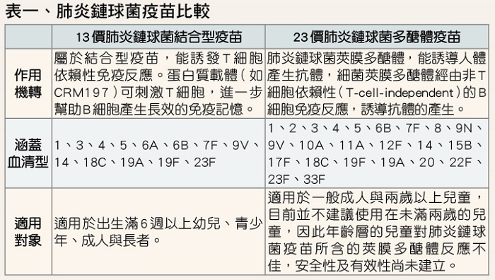 pneumococcal polysaccharide vaccine, PPSV23)與13價肺炎鏈球菌結合型疫苗(13-valent