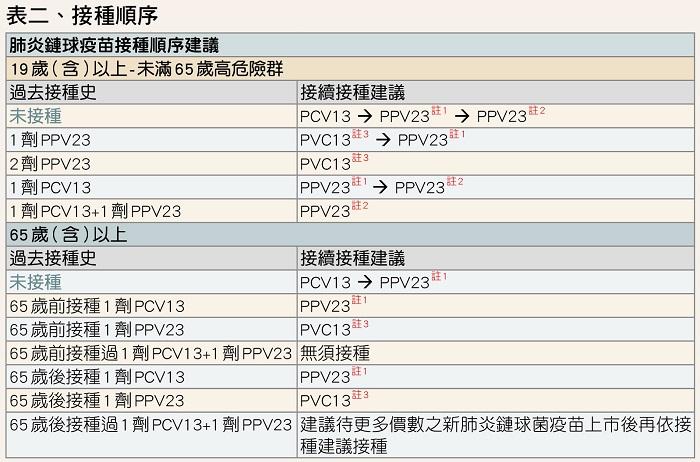 PCV13= 13 價結合型肺炎鏈球菌疫苗;PPV23= 23 價多醣體肺炎鏈球菌疫苗