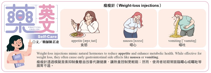 為接軌國際、精進藥師英語能力,藥師週刊成立「藥英文」專欄,每週於此版面刊登。內容將以圖文並茂、簡短的「實用藥學英文」編撰。