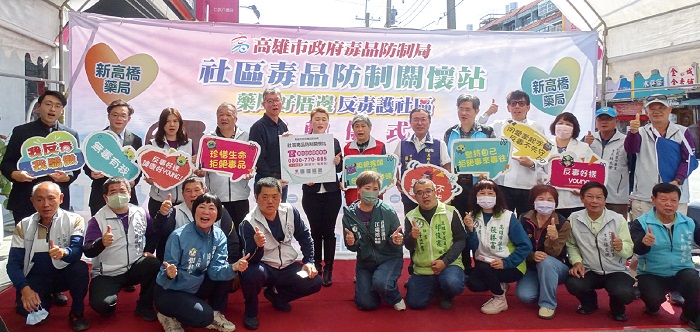 ↑高雄市政府毒品防制局舉行「藥局好厝邊反毒護社區」啟動儀式。