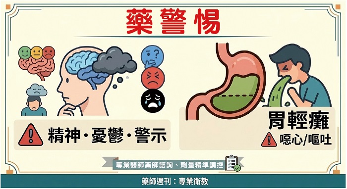 類藥物多未出現明顯自殺行為比例失衡,但仍偶有失眠或進食障礙相關通報1,2。