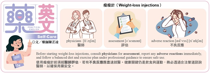 為接軌國際、精進藥師英語能力,藥師週刊成立「藥英文」專欄,每週於此版面刊登。內容將以圖文並茂、簡短的「實用藥學英文」編撰。