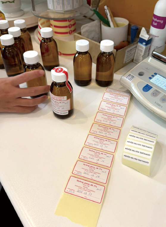 除了製劑調配之外,也觀察到藥師與顧客之間的互動;病人在進入藥局後會先抽號碼牌,依序到櫃檯前排隊,有帶著醫師處方來領藥,也有直接詢問一些日常健康問題。雖然筆者聽不懂匈牙利語,但從藥師耐心解說與病人專注聆聽的神情中,仍然可以感受到社區藥局在當地生活中的重要角色。