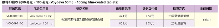 2.公告暫予支付含danicopan成分藥品及其給付規定。